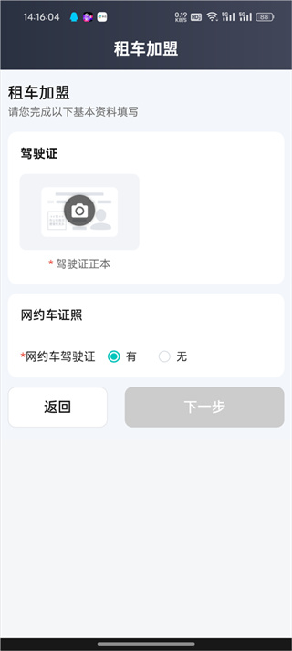 3、按要求拍摄并上传驾驶证、网约车资格证等必备证照。