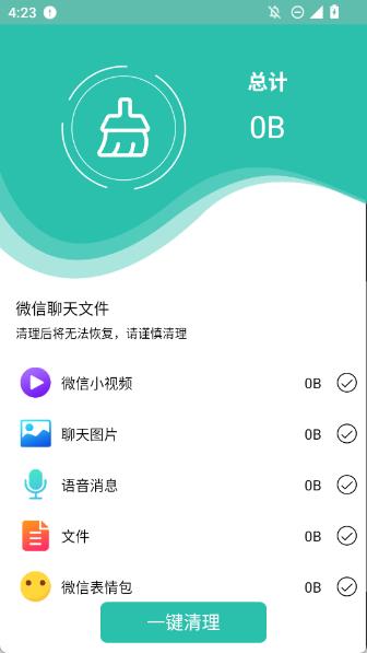 1、强大的微信专清功能,无用的微信小视频、聊天图片、语音消息、微信表情包等都能清理;
