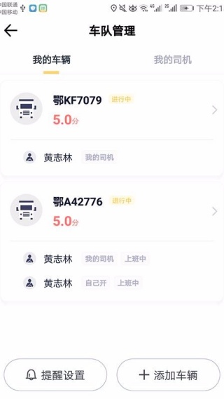 3、在车队管理页面,更及时了解车辆信息,还能添加车辆;