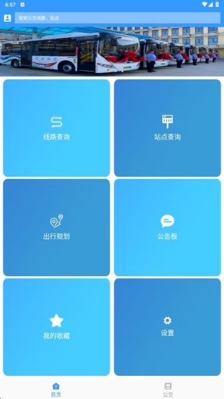 2、在首页展示了线路查询、站点查询、出行规划等功能;