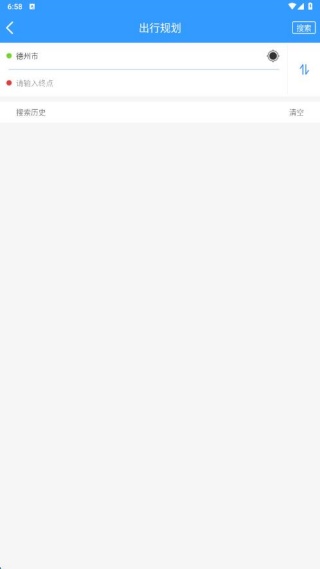 3、进入出行规划页面,展示了起始地点搜索功能;