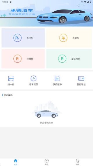 承德泊车app是给车主们打造的车辆服务软件。它能让用户迅速查到周边所有停车位信息,清楚各个车位的收费情况和停车时长等。有了它,轻松就能找到合适车位停车,只需一键就能导航到停车地点,从此出行更方便、更舒适,停车变得超简单。