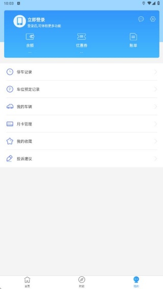 4、在我的页面,支持账号登录功能,还有停车记录、车位预定记录、我的车辆管理等功能。
