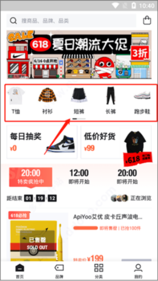 1、进入应用,迅速浏览到商品的分类;