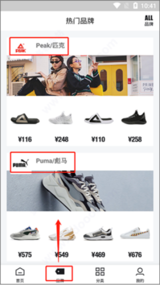 2、“品牌”模板中可看到匹克、彪马、乔丹、奈克等海量品牌商品;