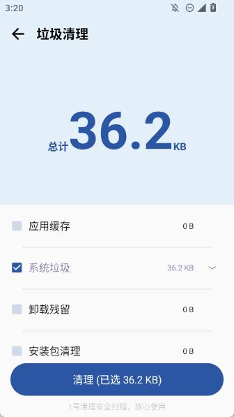 2、能够自动安全扫描手机,手机存在的全部无用垃圾可以找到;