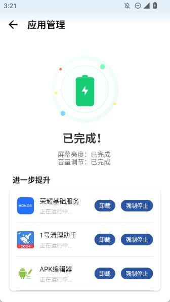 3、应用程序清理,可以自动清理不必要的后台运行应用程序以便于帮助手机节能省电;