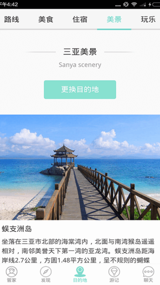 4、在目的地页面,还能获取到旅游路线、美景、住宿等信息。