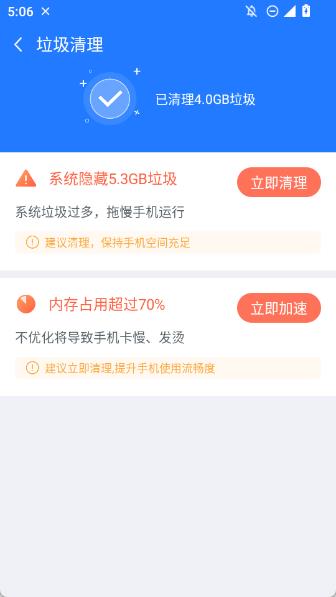 6、手机一键加速,手机垃圾文件清理,加速手机运行速度,可释放内存;