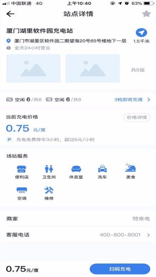 3、查看详情,知晓每个充电站的收费情况,合理选择;