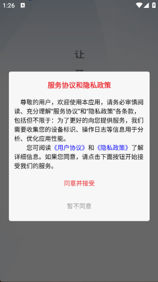 1. 下载并安装APP,点击‘同意并接受’,即可进入主页面;