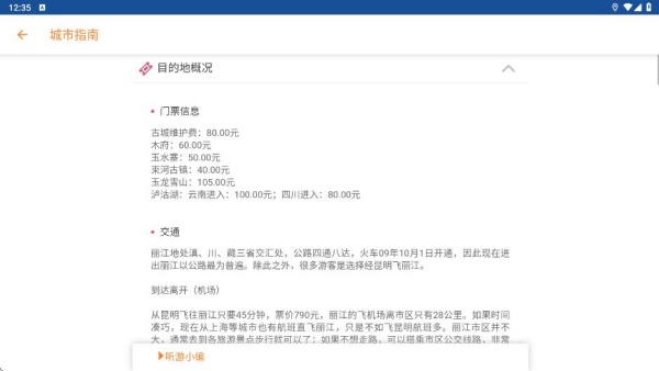 丽江导游app可以作为每个人的智能导游。如果你去丽江旅游,可以点击这里一键获取丽江旅游地图。您可以直接展开手绘地图。如果您使用离线地图,则可以随时随地查看地图。各景点分布位置清晰。值得一提的是,这里的每个景点都配有智能语音导览,可以免费点播。