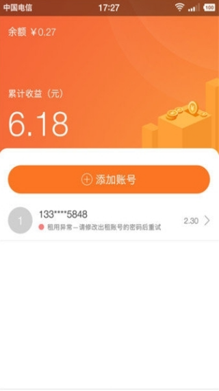 3、收益可视化看板,动态展示账号出租收益数据变化;