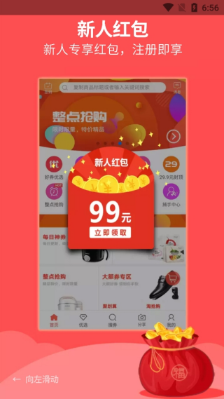 1、9.9元包邮专区打破运费门槛,单件商品亦可享受全国包邮服务;2、代言人体系支持商品推广返佣,团队发展模式创造额外收益渠道;