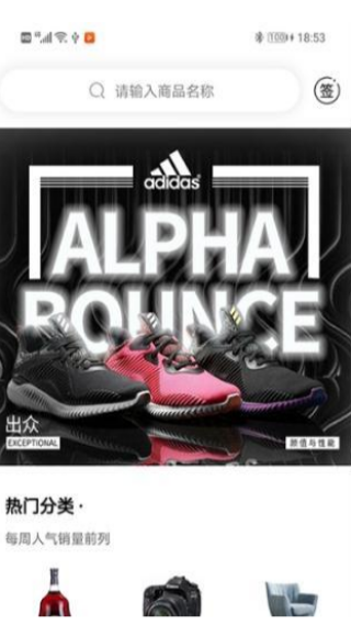1、完成app下载后进入首页,海量精选商品即时呈现;
