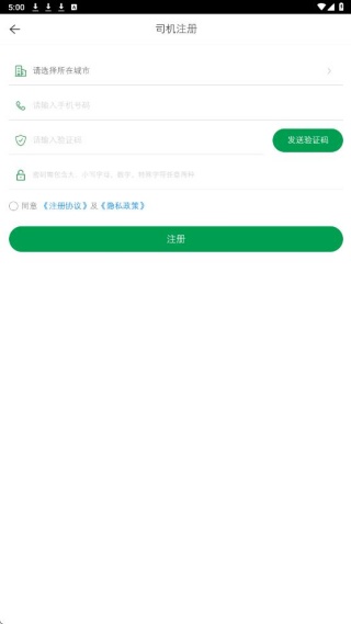 1、下载安装应用后完成司机身份认证;