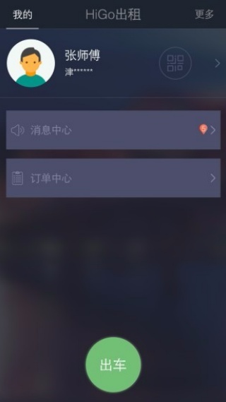 4、进入个人中心查看账户信息,点击"出车"按钮即可开启接单服务。
