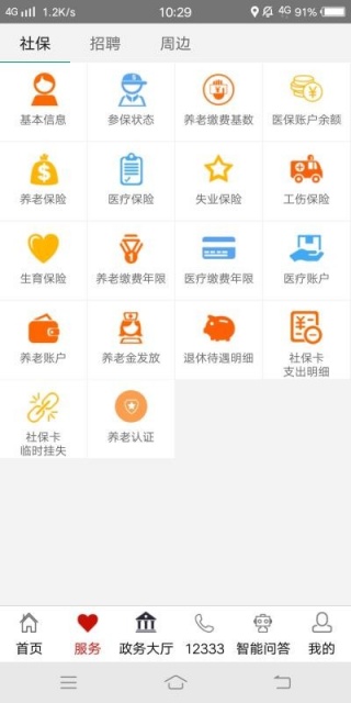 2、通过服务导航栏,快速定位社保、招聘等核心功能模块;