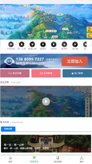 2、导览专区采用lbs技术,实现周边景点智能推荐与信息聚合;
