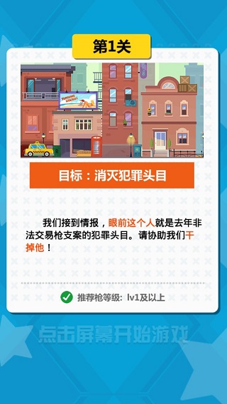 1.在游戏中不断的闯关,来消灭更多的犯人