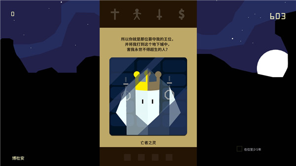BADEND达成要求二:受到1998年的第三次诅咒后,一直选择摇头(左←)直到死亡,死后面对堕落国王的灵魂的问题,选择点头。