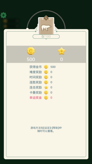 4.如下图,成功完成纸牌挑战就可以获取对应的金币奖励。