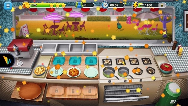 3.随着挑战的不断深入,画面中的餐车等级将会解锁更多的美食玩法,你将能制作出更多的美食并满足更多顾客的需求。