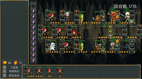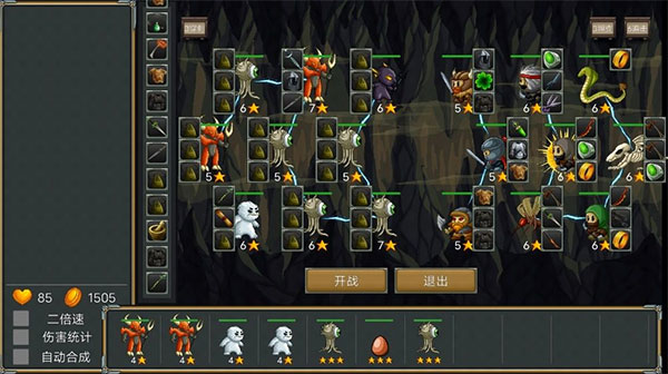 2、作品中的怪物都拥有不同的属性、职业、技能,你需要通过三个或是六个不同的职业角色上阵组成自己的阵营,还要触发该阵营所拥有的职业技能,除此之外合理的搭配角色的装备也是游戏的特色玩法之一。
