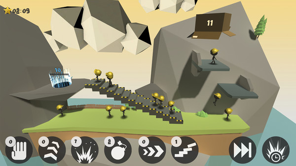 2、将这些火柴人聚集在一起,帮助它们成功的穿越这片区域,利用手中的道具。