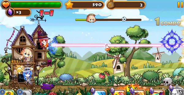 玩家们一定要注意那些道具的使用,以及在前进的时候玩家们收集一些金币和宝石,来召唤更多的屋女加入战斗。