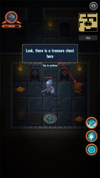 3、看到宝箱提示时,操控角色移动到宝箱位置,点击宝箱即可开启,获取宝箱内的奖励。