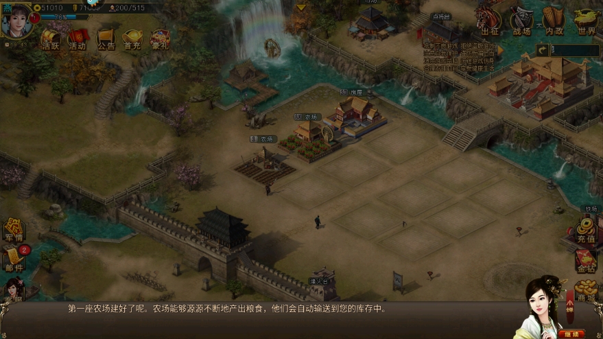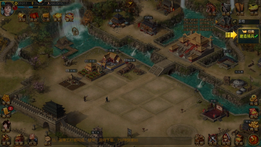 1. 游戏初期应当优先完成新手任务解锁主城建筑功能,这是开启资源生产和武将招募系统的基础条件。