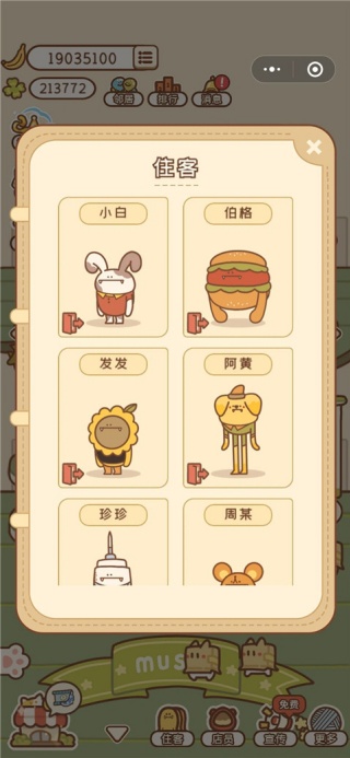 2.如下图所示,在住客面板中玩家可以查看住客的信息,并根据它们的需求来不断地改造升级公寓。