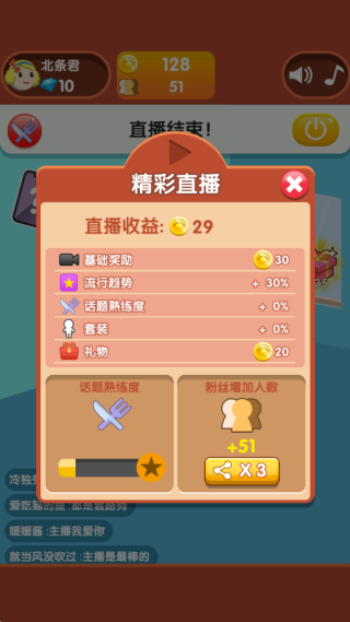 1.玩家需要选择合适的话题开启直播,点击屏幕能够加速完成直播。