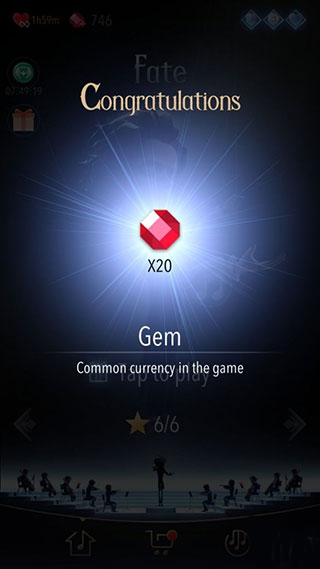 2、通关后获得宝石奖励,宝石可用于游戏内交易,是通用货币。