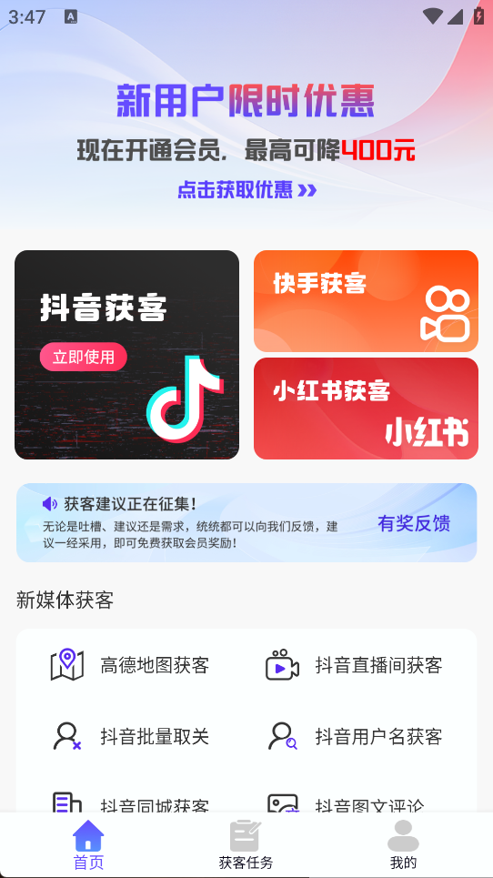 2.为销售人员提供了多种获客方式,包括关键词搜索、短视频获客、直播获客等,高效地拓展客户群体;