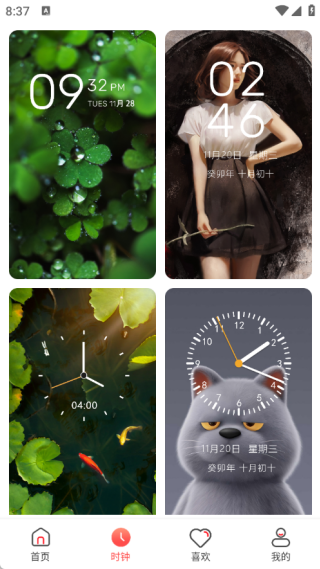 3、独特的动态时钟壁纸功能,不仅提供精心挑选的壁纸库,还支持用户自定义图片,打造个性化的桌面时钟。