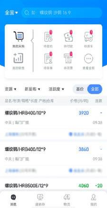 1、交易管理:支持在线搜索资源、在线询价,查看不同交易状态下的采购单、销售单,还能在线签约、在线派车、在线签收、在线开票,实现交易全程在线化。