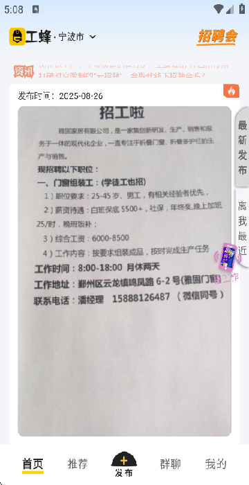 4、看到心仪的工作后,点进去可以查看详细信息,并联系包工头进行进一步沟通。