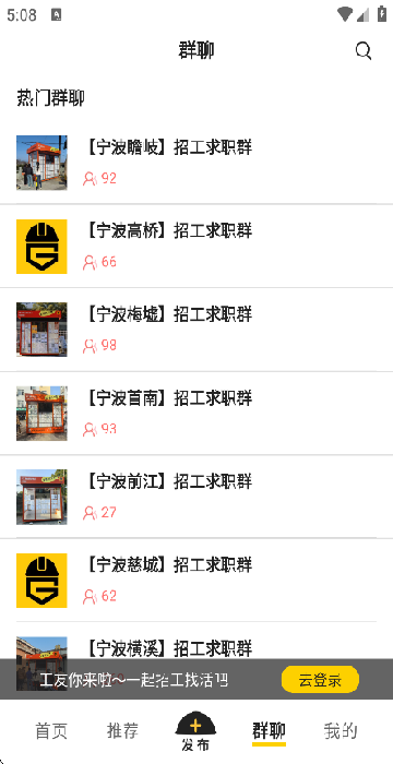 3、选择好地区后,界面会更新成该职业相关的招工信息。用户可以浏览这些信息,找到自己想要尝试的工作。