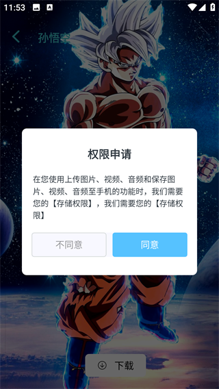 4、点击下载,;首次使用需要开启相册等权限,点击同意授权即可。