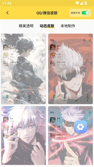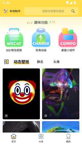 2、在首页可以看到QQ/微信皮肤,充电动画以及桌面小组件等功能入口;