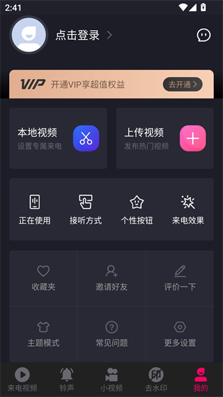 3、【DIY主题】软件支持用户自定义本地视频,一键制作你的专属来电秀;