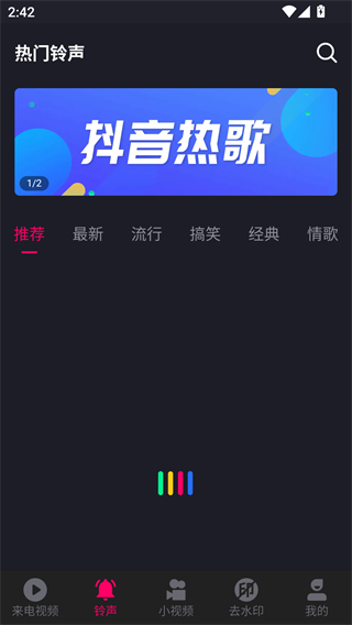 4、铃声板块还有抖音热歌以及最新、流行等不同分类的铃声推荐。