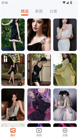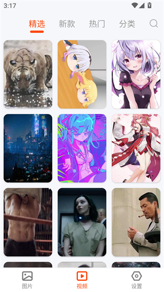 2、在首页可以看到精选、分类、新款等各个壁纸类型;