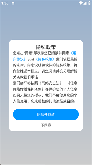 1. 下载并安装APP,点击‘同意并继续’,即可进入主页面;