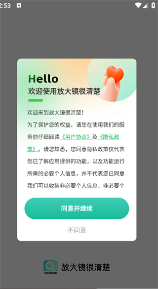1. 下载并安装APP,点击‘同意并继续’,即可进入主页面;
