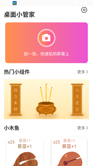 2、在首页可以看到热门小组件推荐,还有电子木鱼等功能;