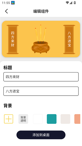 3、点击一个自己感兴趣的小组件,可以开始设置标题、背景等,然后点击添加到桌面即可;