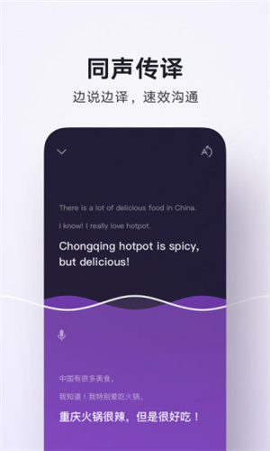 2、或点击下方麦克风图标,按住说话即可实时语音翻译(支持中英日韩等20+种语言);